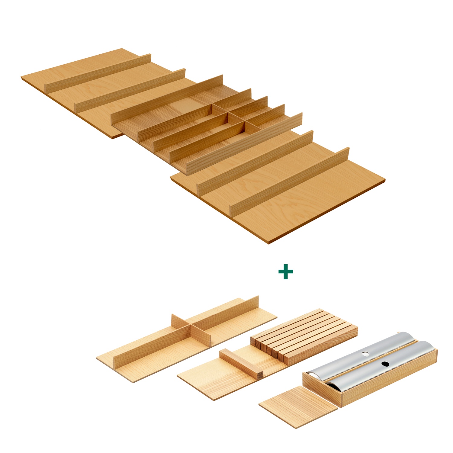 —КОМПЛЕКТ лоток + делитель + держатели для фольги и для ножей, ФайнЛайн Линик 1000-1200 мм, глубина 500 мм, цвет ДУБ натуральный Kessebohmer