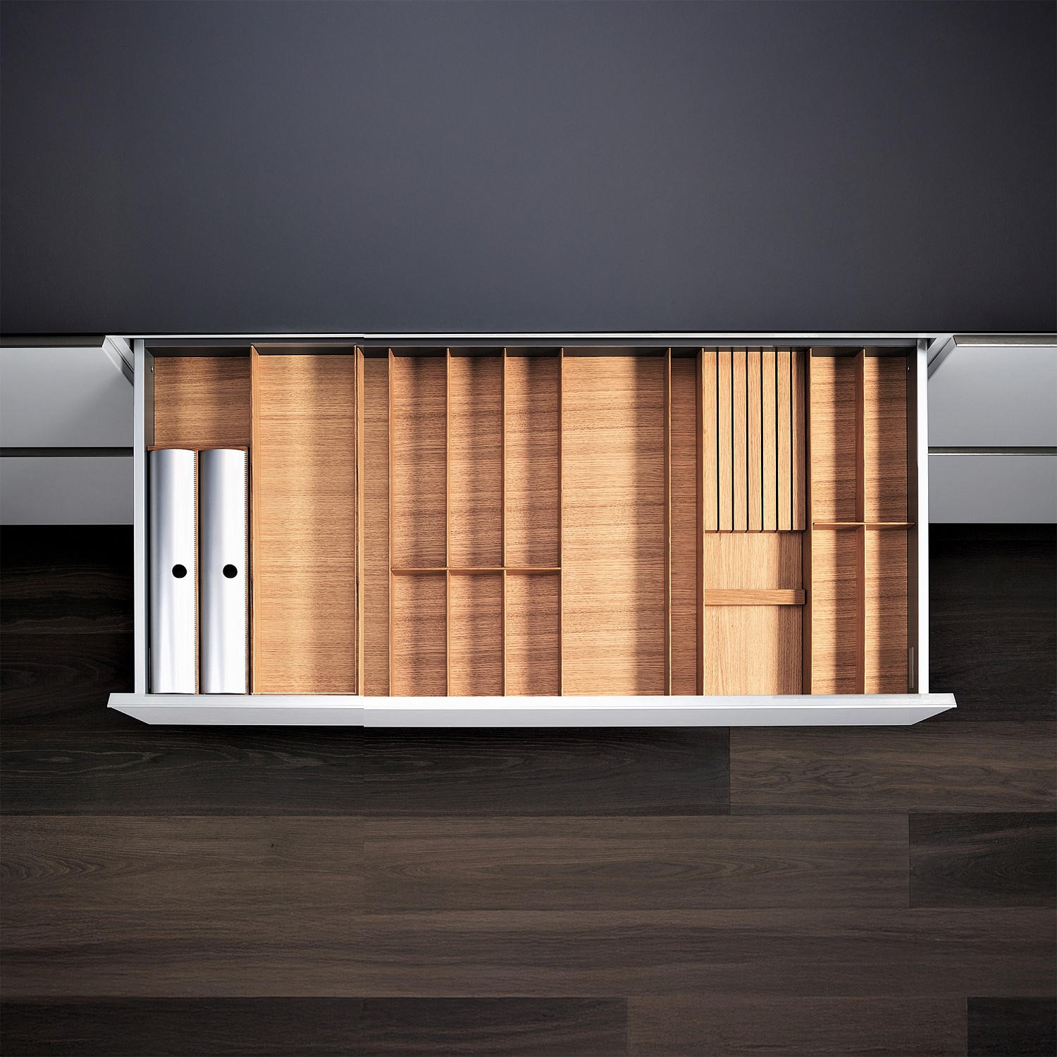 КОМПЛЕКТ лоток + делитель + держатели для фольги и для ножей, ФайнЛайн Линик 1000-1200 мм, глубина 500 мм, цвет ДУБ натуральный Kessebohmer