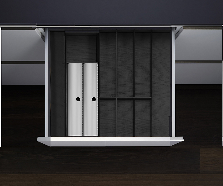 —КОМПЛЕКТ лоток + держатель для фольги, ФайнЛайн Линик 500-600 мм, глубина 500 мм, цвет ЯСЕНЬ черный Kessebohmer