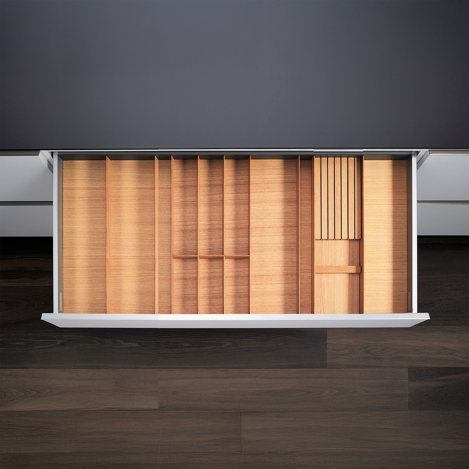 КОМПЛЕКТ лоток + держатель для ножей, ФайнЛайн Линик 1000-1200 мм, глубина 500 мм, цвет ДУБ натуральный Kessebohmer