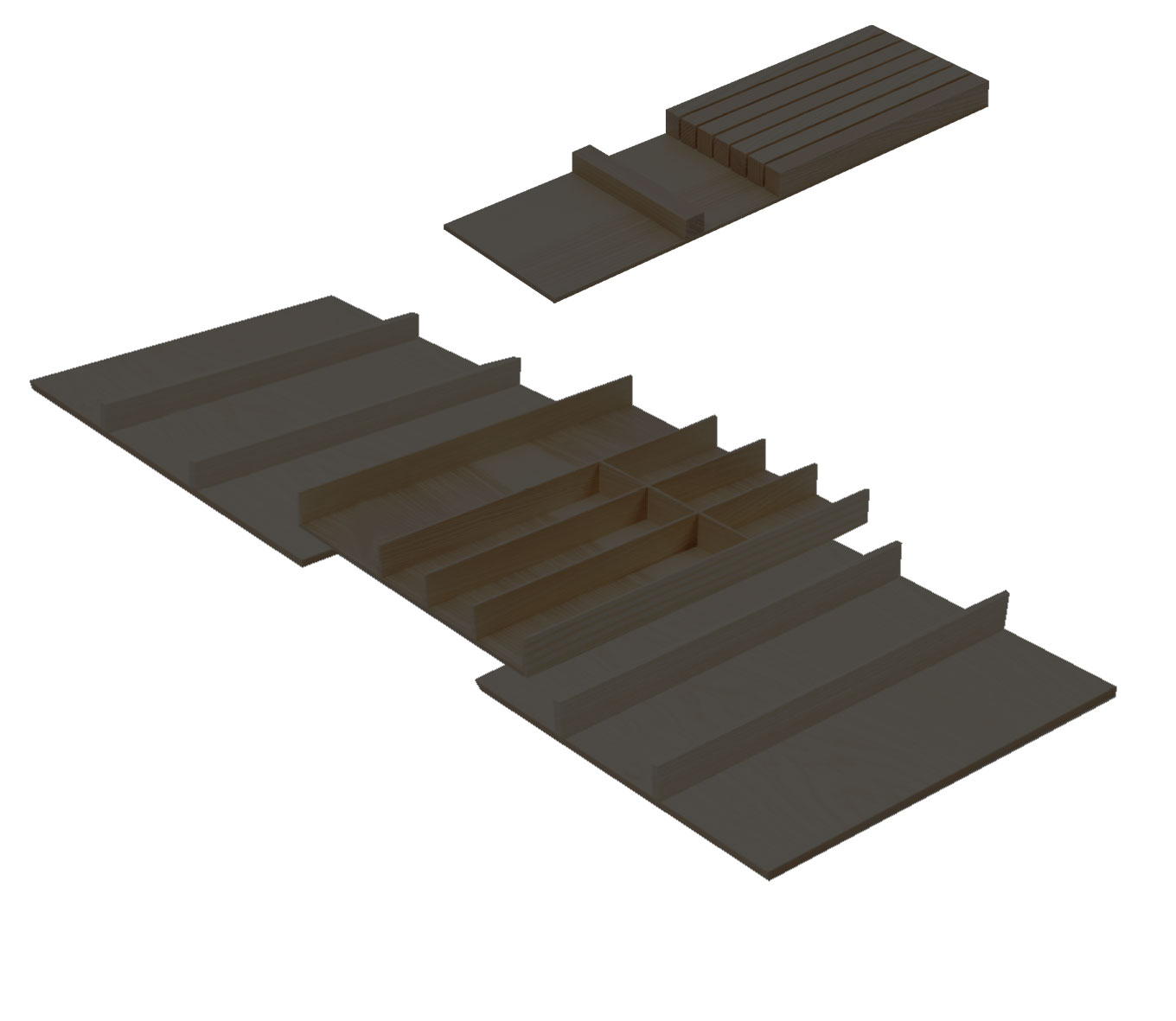 —КОМПЛЕКТ лоток + держатель для ножей, ФайнЛайн Линик 1000-1200 мм, глубина 500 мм, цвет ЯСЕНЬ черный Kessebohmer