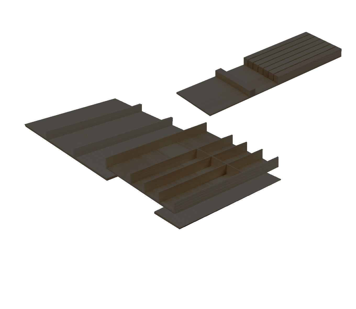—КОМПЛЕКТ лоток + держатель для ножей, ФайнЛайн Линик 800-900 мм, глубина 500 мм, цвет ЯСЕНЬ черный Kessebohmer