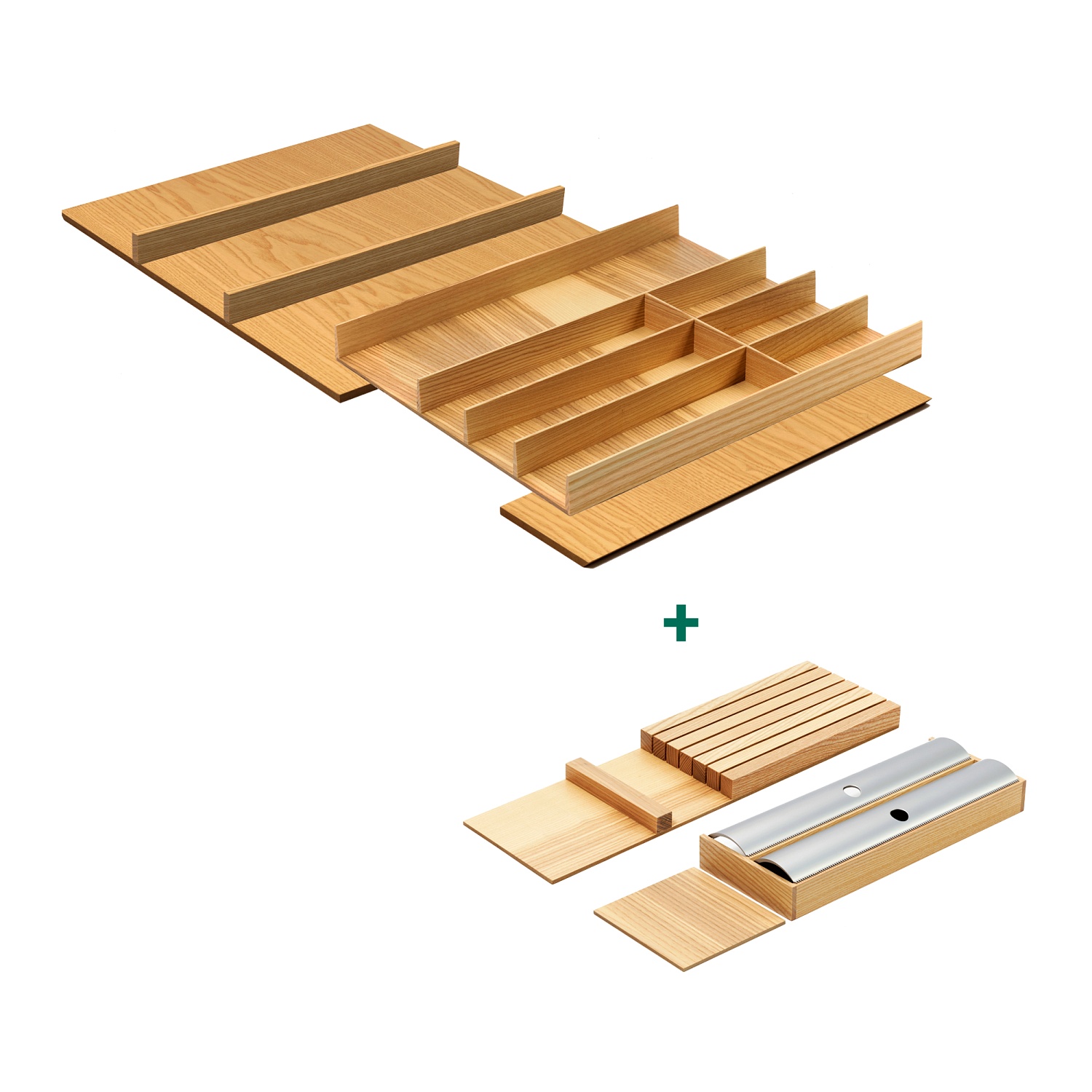 КОМПЛЕКТ лоток + держатели для фольги и для ножей, ФайнЛайн Линик 800-900 мм, глубина 500 мм, цвет ДУБ натуральный Kessebohmer