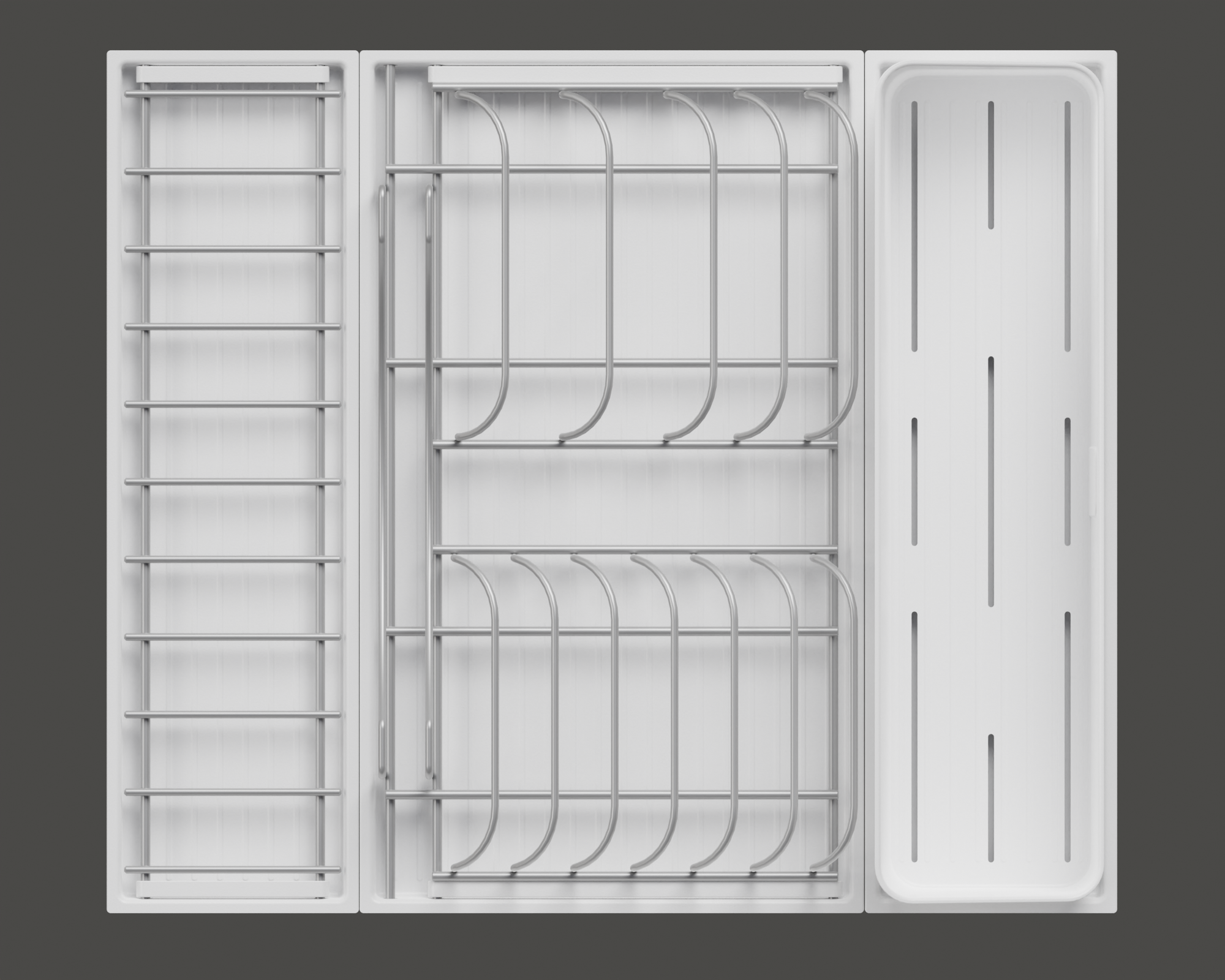 Модель — 1 большой модуль для посуды + 1 малый модуль с решеткой + модуль для столовых приборов