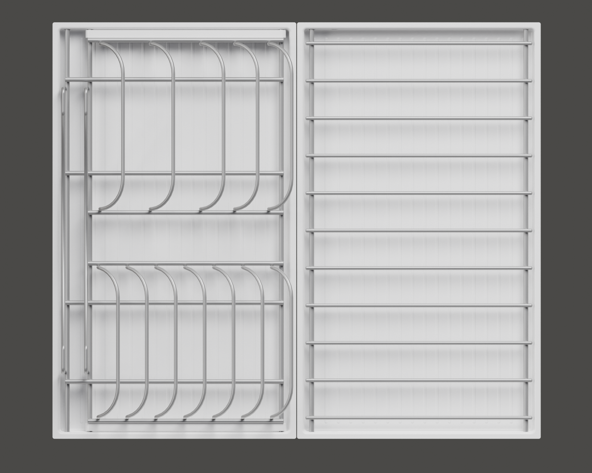 - 1 большой модуль для посуды + 1 большой модуль с решеткой + модуль для столовых приборов