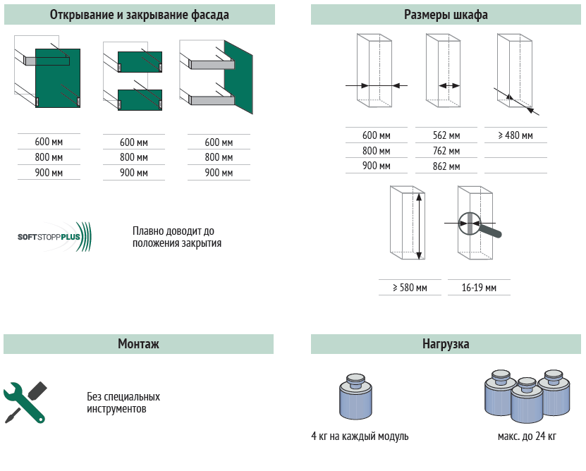 • 1 большой модуль для посуды + 1 малый модуль для посуды + 1 малый модуль с решеткой