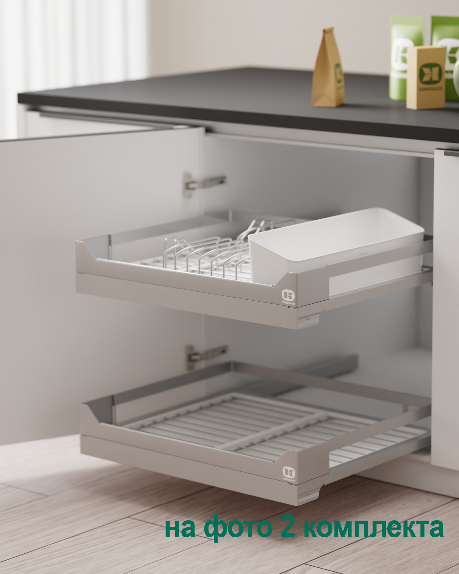 1 для посуды большой (423 x 248 мм, состоит из 1 х держатель металлический, 1 х поддон пластиковый, 2 х защелка-ограничитель)
