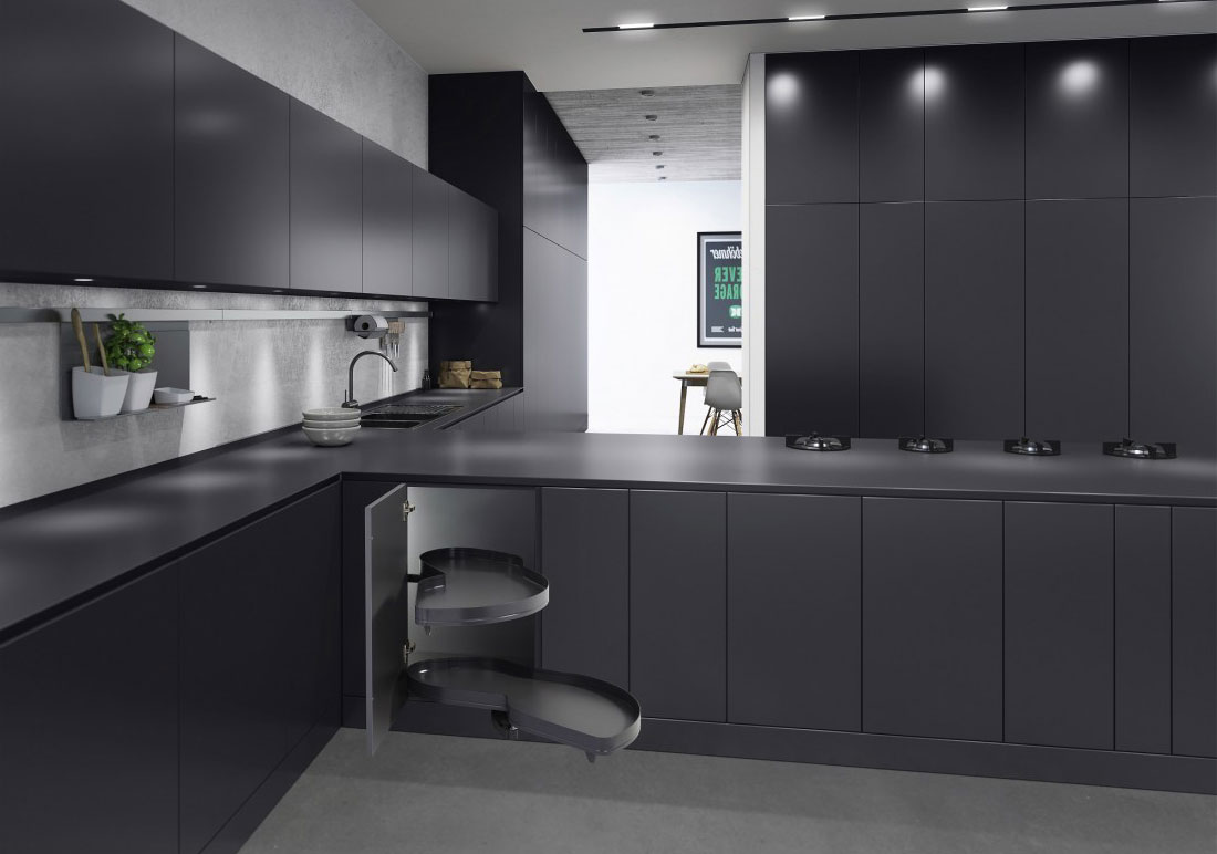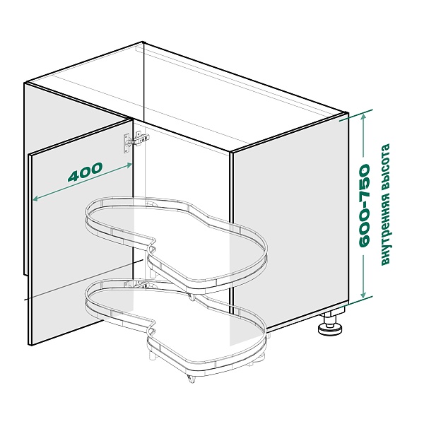 Комплект полок правый, Леманс 400 мм, Арена ПЬЮР, 2 полки + рычаги, цвет АНТРАЦИТ, цвет дна Антрацит, антислип (2603909846)