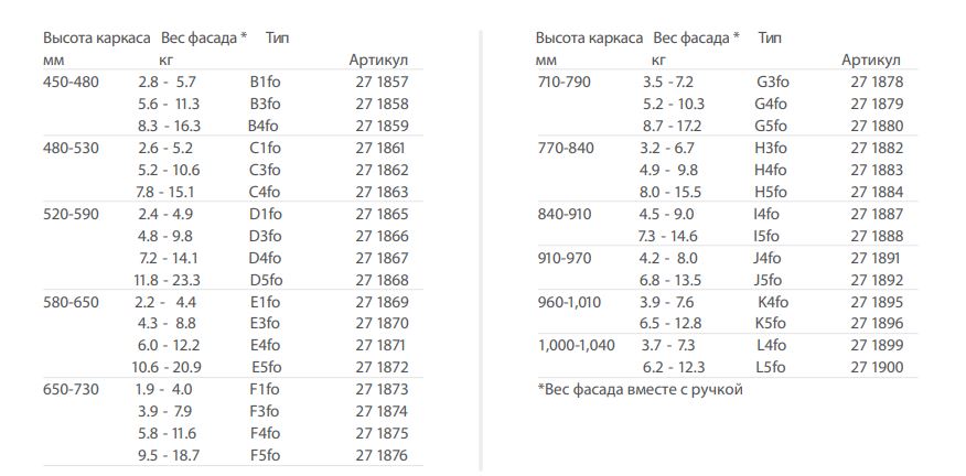 Вес фасада (кг) 11,8 - 23,3