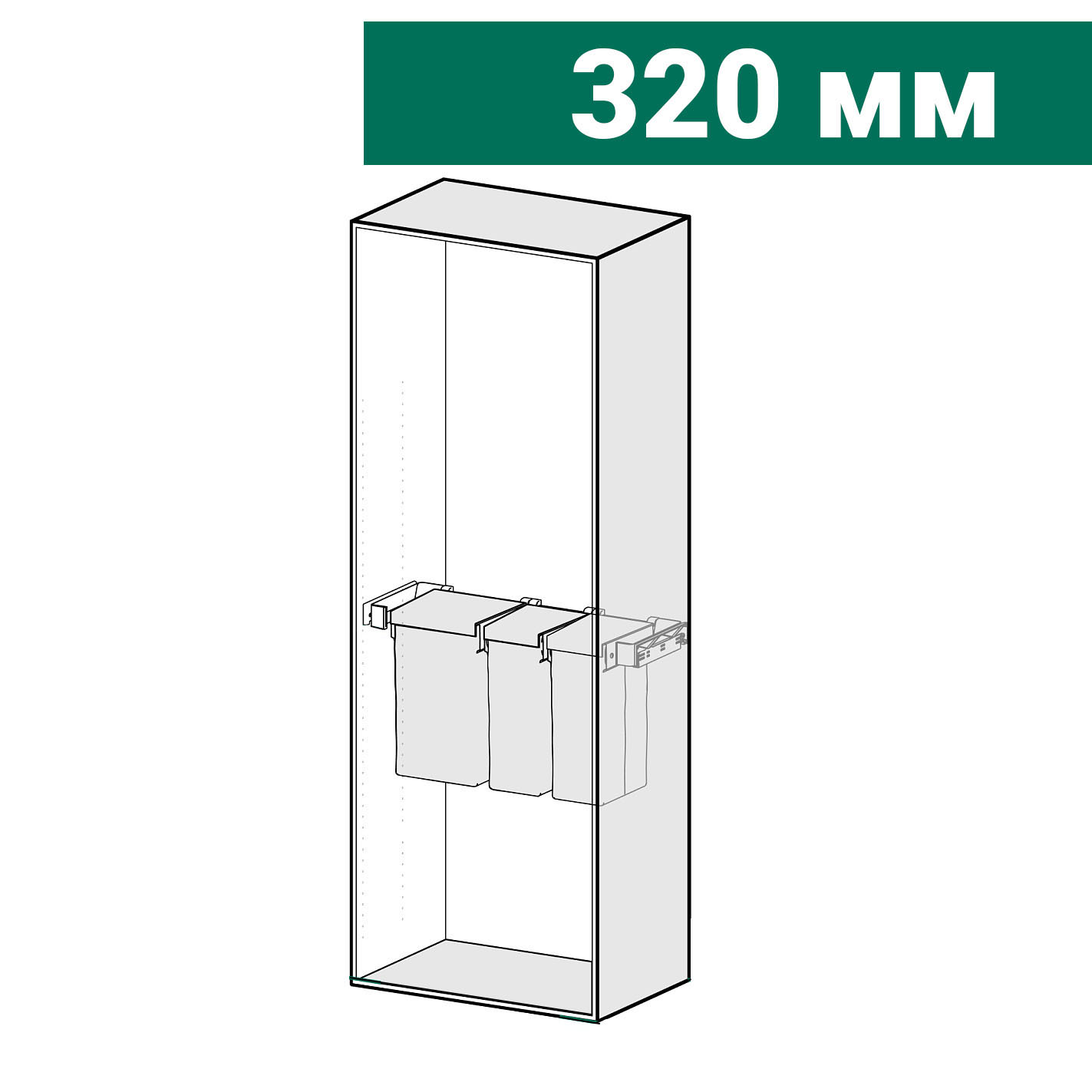 КОМПЛЕКТ Мешок для белья 320 мм Конеро W 860-920 мм, D 345 мм; мешок узкий 3 шт; шампань Kesseböhmer